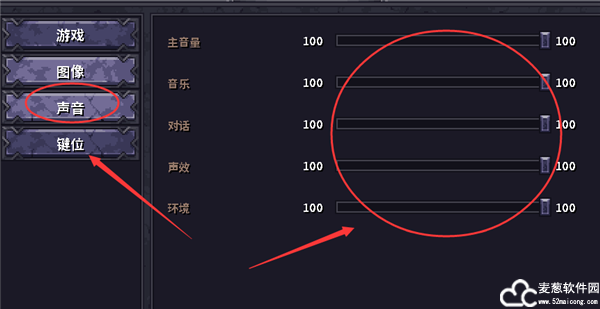 5、游戏中的声音也可以设置,主音量、对话以及声效等。