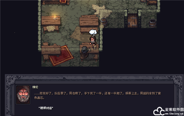 1、打开游戏进入到里面后,需要跟NPC进行对话,点击继续对话。