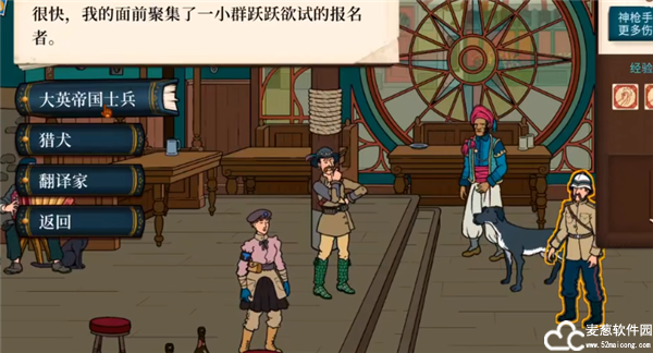 6、在这里玩家需要招募一些冒险的角色,有士兵、猎犬以及翻译家。