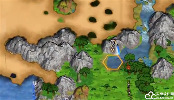 3、在这个瀑布旁边有一个问号,玩家需要控制角色来到这里。