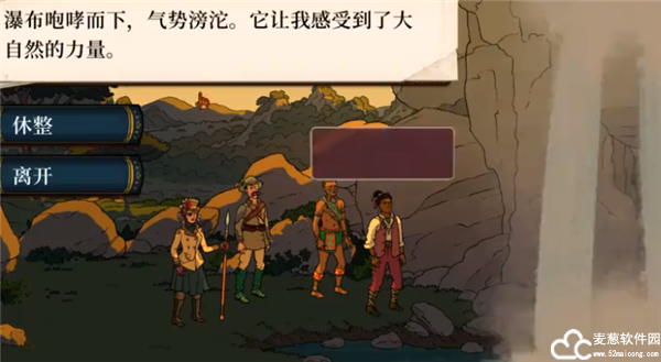 6、之后就会触发剧情,玩家可以选择原地休整或者是离开这里。