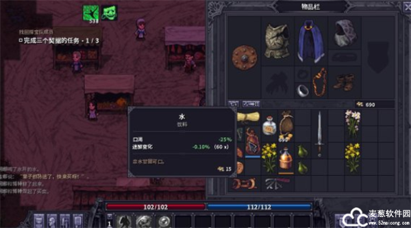 1、在角色的背包内会有一个水囊可以用来装水的,可以减少口渴程度。