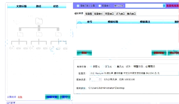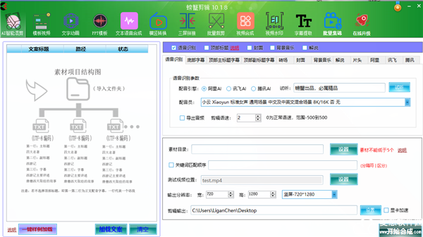 视频中需要表达的文本内容,软件根据文本自动生成配音,支持阿里巴巴云、腾讯云、百度云智能AI配音。