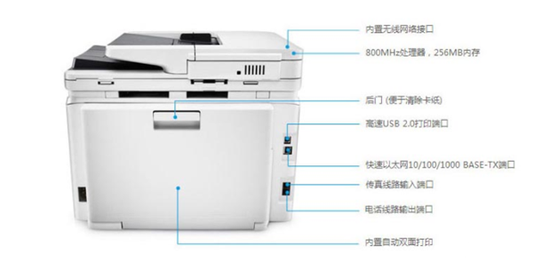 首页复印时间 黑白 (A4纸,就绪模式下):仅需13.5秒;彩色 (A4纸,就绪模式下):仅需16秒