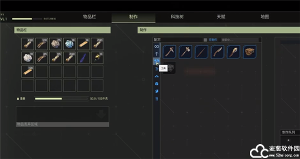6、之后就需要查看自己的科技树到达了什么程度,能够建造什么样的设备。