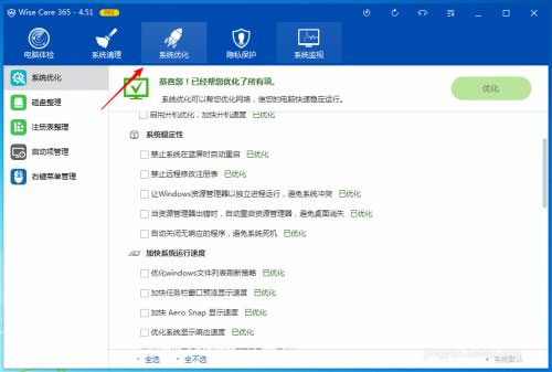 5、在优化系统包含磁盘整理、注册表文件梳理、启动项管理和右键管理方法等。