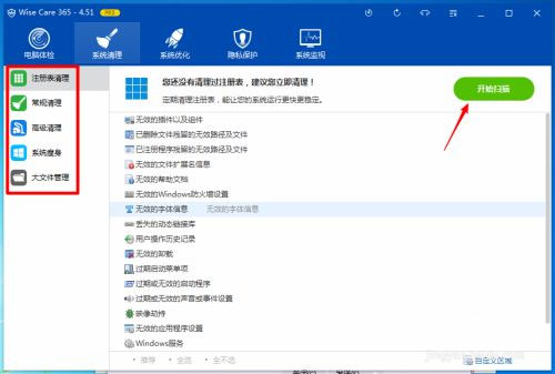 3、在软件的系统清理具备注册表清理、基本清除、高級清除、系统瘦身、大文档管理等功能。挑选后点一下逐渐扫描仪。