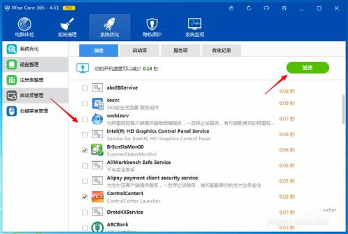 6.大家用软件在系统启动项扫描机后关掉多余的开机启动项,可以提升操作系统的开启速率。