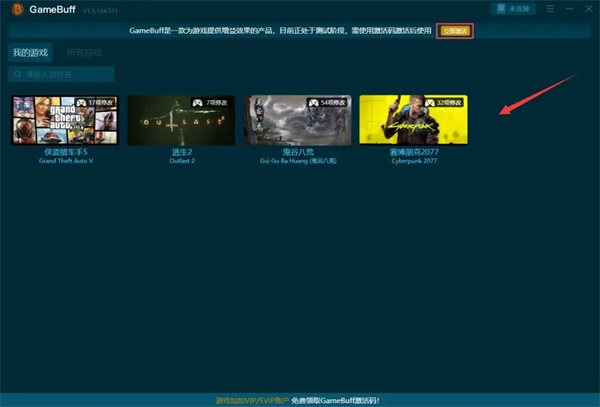 1.安裝好修改器,初次运行软件它将自动识别电脑上中的全部游戏。默认设置状况下,游戏将表明在我的游戏中。您只需打开主页,点击右上方马上激话就可以。您可以完全免费键入游戏中的激活码ameBuff修改器。