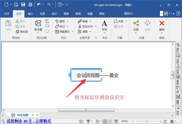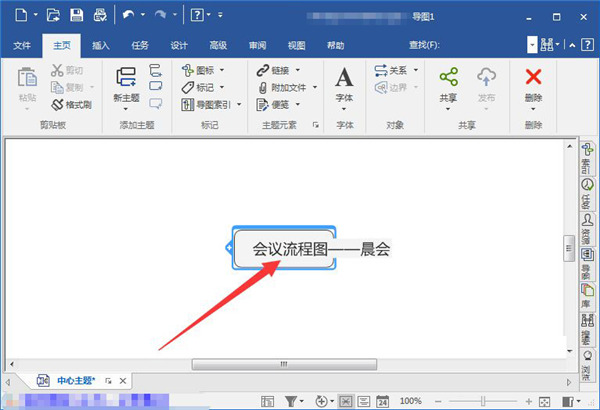 2.双击鼠标核心主题输入框,依据须要在输入框中键入对应的文字內容,如我键入大会流程表-早会。
