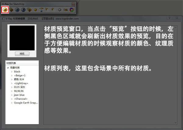 第一个按键从左逐渐M”是vray原材料编辑软件用以编缉和浏览场景中目标的原材料。