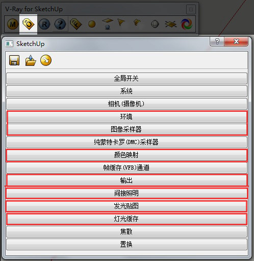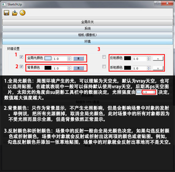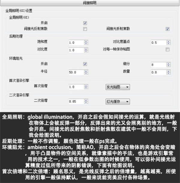 第二个是vray用以调节渲染自然环境、间接性光等参数的参数控制面板将在未来进行表明。标识的工程一般必须调节,别的新项目一般可以默认设置。
