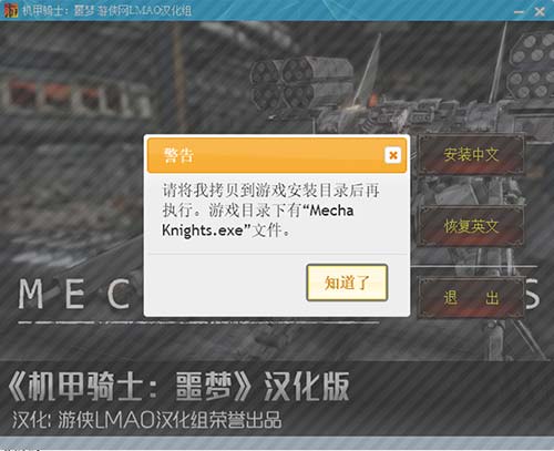机甲骑士噩梦汉化补丁吧!使用后就可以实现全游戏内容以及文字的汉化了,全都会变成简体中文,不仅仅能够解决语言不通的问题,还能够提高玩家的游玩体验,可谓是两全其美啊!