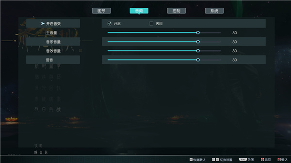 8.在声频中,游戏玩家可以调节主音量、歌曲声音、声效声音等。