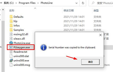 7.这时在文件目录中运作PLkeygen.exe文件可以得到注册码并全自动拷贝