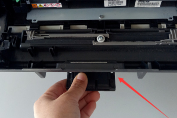 4.随后拉下复印机的顶盖,随后把里边的硒鼓渐渐地拿出来,如果沿着用劲,不必使蛮干。