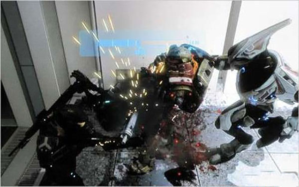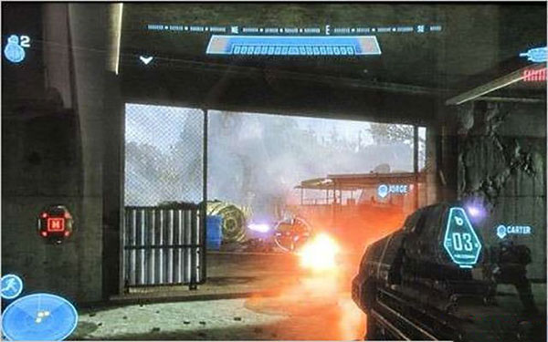 随后和同伴碰面,消除外边的对手,进楼。这儿提议的武器装备配备是自动步枪和喷头。有几个问题要隔着细长的过道打正对面。有高級精英就把喷头喷掉。这儿会有一个拿着然料炮的高級精英。如果不立即杀掉,很有可能会跑到下一步。