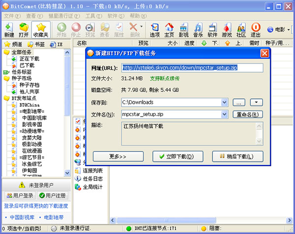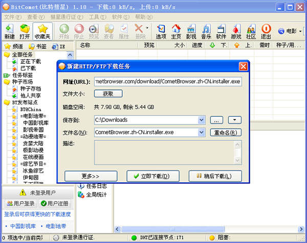比特彗星电脑版是一款技术性非常专业的国内BT下载利器,也是完全免费的BT資源下载专用工具。此软件具备与众不同的长效种子功能作用,进一步提高了下载速率和种子存活率,支持BT/HTTP/FTP,支持BitTorrent(BT协义)、Magnet(磁链接),eD2k(电驴下载下载加快)支持B的生产制造T公布种子资源,全自动定阅放置挂机,支持网页页面远程操作,支持DHT互联网及UPnP投射,支持32M区块链系统分区,有硬盘缓存文件加快服务项目,支持短视频边下收看。为了更好地让客户得到更快的下载感受,小编特地给大家带来的是该版本的最新官方中文版,将繁体字变成了简体中文版,便捷了国内外消费者的应用,提升和提升了种子传输速率和程序流程长期性悬架的可靠性,适应了大部分种子RSS的发布,支持世界各国关键P全自动公布T站挂体制种。此软件十分功能强大,不用安裝,从本网站下载并解压,双击鼠标就可以免费试用,有需要的客户赶紧来下载感受吧!