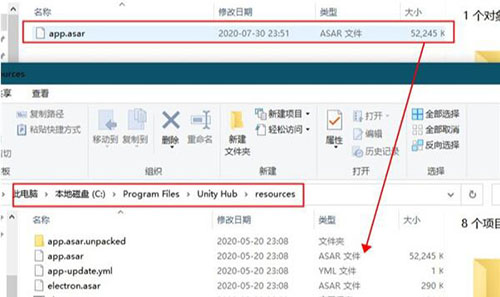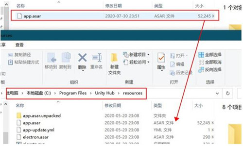 4.拷贝crackHub2.3.a2文件夹名称下的a2文件夹名称pp.asar到C:Program FilesUnitHubresources