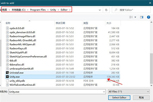 5.拷贝crackUnity2021.1.0f1下的Unity.exe到C:gram FilesUnityEditor