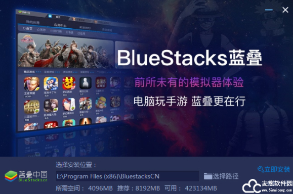 2、双击“BlueStacks4Setup”安装程序,然后进入软件安装向导界面,可选择自定义安装路径。