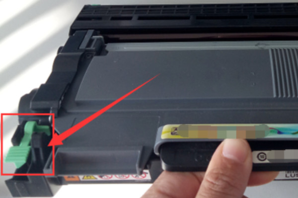 5.见到硒鼓壳左角有一个翠绿色按键,按下按钮,随后轻轻地取下鼓芯。