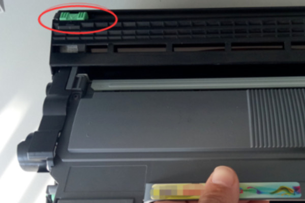 2.随后见到新的硒鼓上有一个外盖,用于维护硒鼓。拆换硒鼓时,还记得取下外盖,不然无法安装。