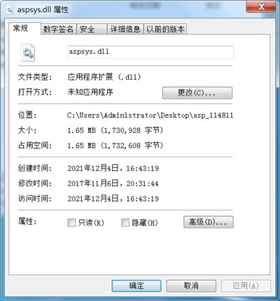 aspsys.dll修复文件开展安裝修补。