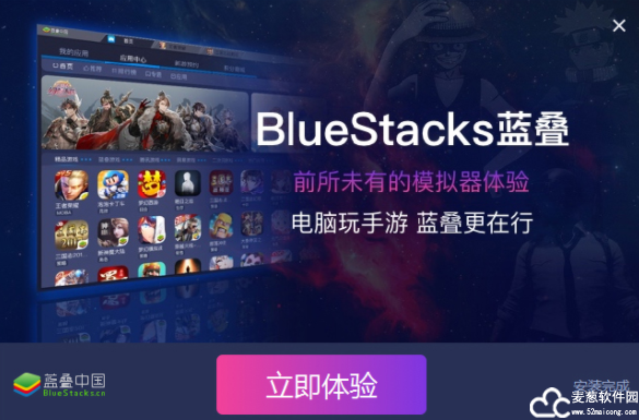 3、蓝叠模拟器安装完成,建议添加桌面图标生成快捷方式,方便在桌面上快速打开。然后我们点击“立即体验”。