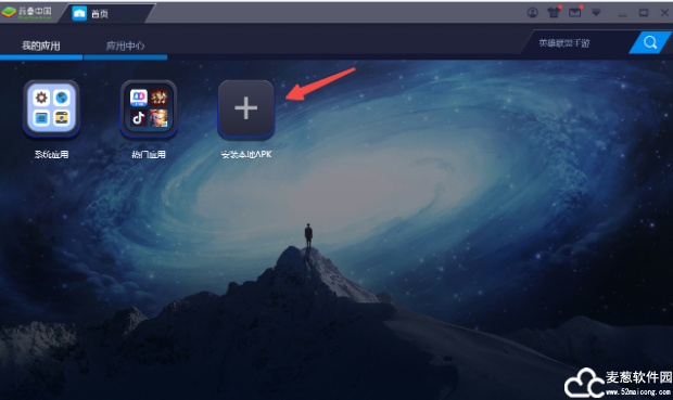 4、运行模拟器,点击“安装本地apk”,然后找到在麦葱站下载的软件包中解压的APK文件,双击打开就可以安装了。