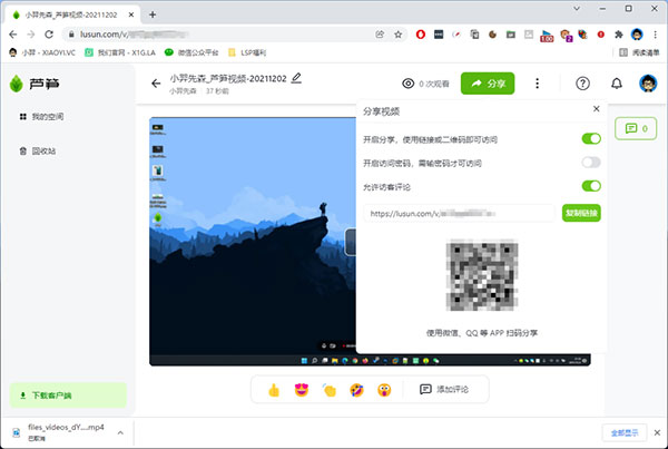 在视频分享层面,适用网页链接和二维码,也支持设定视频浏览登陆密码,防止个人隐私视频被别人见到;