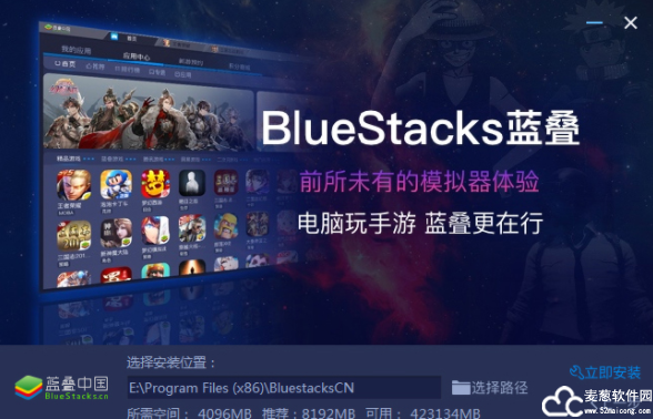 2、双击“BlueStacks4Setup”安装程序,然后进入软件安装向导界面,可选择自定义安装路径。