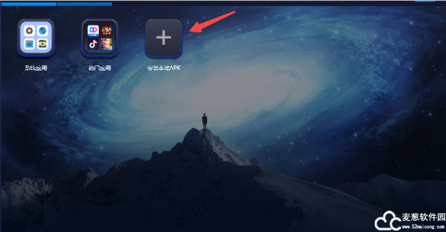 4、运行模拟器,点击“安装本地apk”,然后找到在麦葱站下载的软件包中解压的APK文件,双击打开就可以安装了。