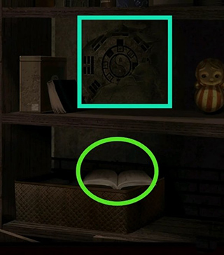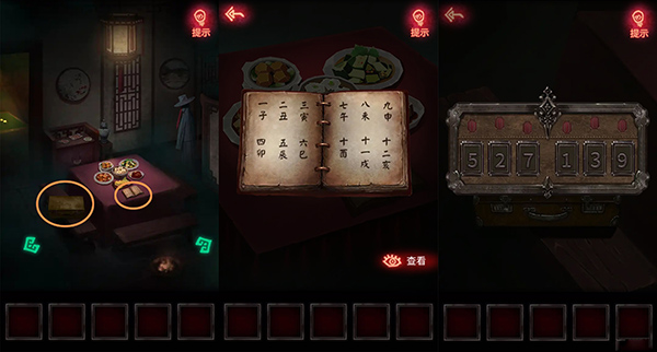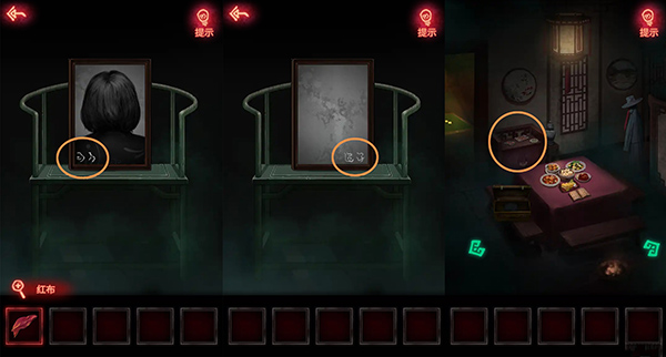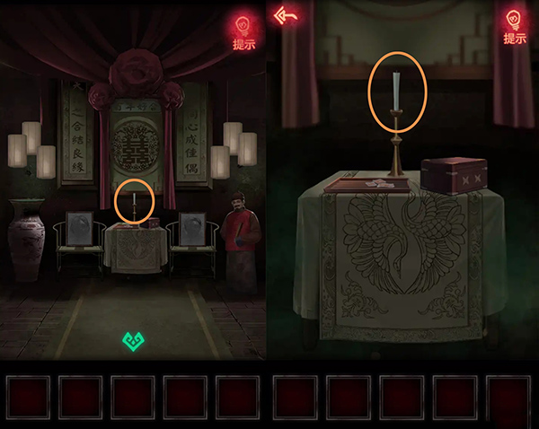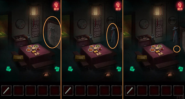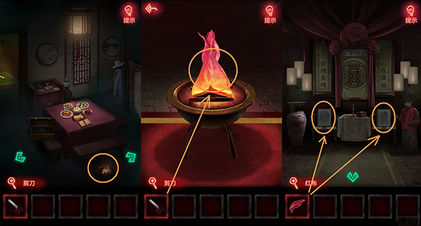进到房屋的中间餐桌,获得焟烛。翻阅绿圈书,获得游戏道具和提醒。白圈后面案件线索开启。