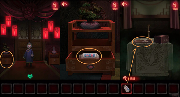 一开始,赶到右侧的宗祠,看桌子上的案件线索,掌握放置灵位的次序。