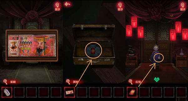 拼图图片后获得【冥钞】,【冥钞】放到小盒子里的【大红包】,把【大红包】交给小孩。