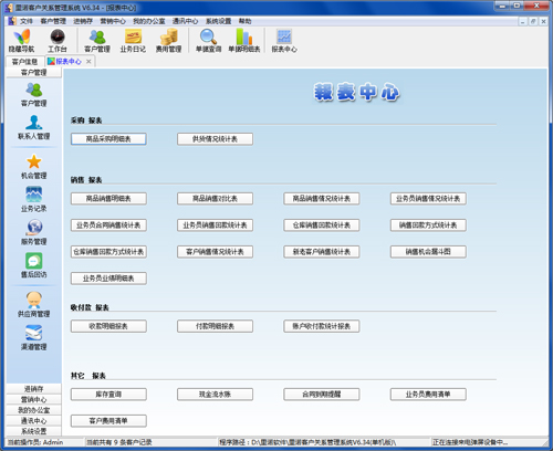 报表中心:强劲的报表中心功能可查询各种各样市场销售归纳、市场销售清单、流水账单等财务报表,并可查询业务员的市场销售收付款统计分析。