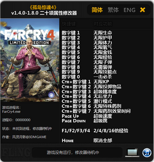 孤岛惊魂4修改器风灵月影版按键说明
