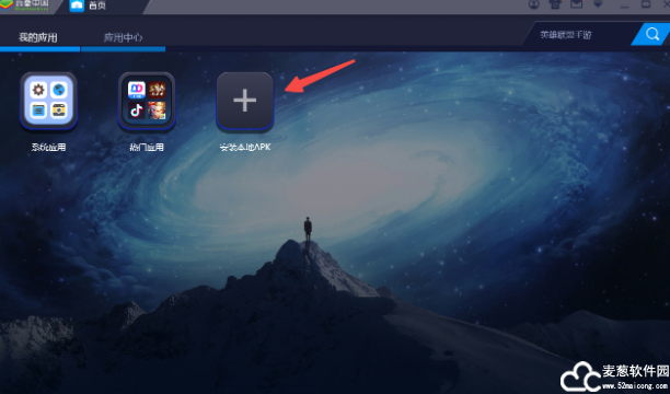 4、运行模拟器,点击“安装本地apk”,然后找到在麦葱站下载的软件包中解压的APK文件,双击打开就可以安装了。