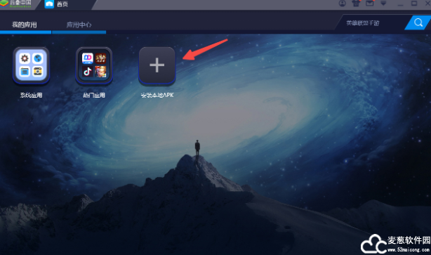 4、运行模拟器,点击“安装本地apk”,然后找到在麦葱站下载的软件包中解压的APK文件,双击打开就可以安装了。