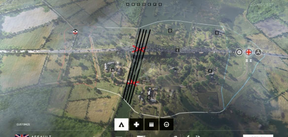 英军则是 DFG,可是 D 在英军方位上,花草树木或草坪较少,非常容易曝露行迹。