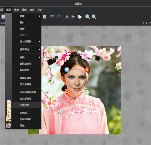 2.开启图片,将脸拷贝到另一张图片上,挑选菜单面--无缝拼接合拼