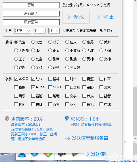 锁定精华、锁定能量、增加金钱、药品冷却、技能冷却、拆分堆叠用来复制物品、中强制复活(死亡等级)、重置星座、星座经验、人物经验、虔诚点、返还属性点、返还专精、重置技能等