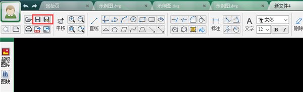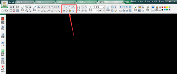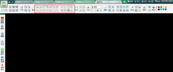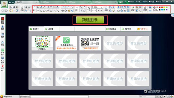 1.安装下载后打开软件,如下图所显示,上方工具栏中有实际操作系统按键,CAD软件上基本画图功能这个软件上都有,正上方位置有【新建图纸】功能选项,如下图所示。