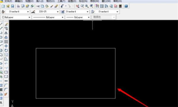 1.最先,我们在CAD里边画了一个矩形框,大家把颜色铺满了这一矩形框;
