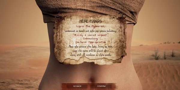 在决策了人物角色的最后品牌形象后,你所犯的罪刑便会摆放在你眼前。游戏从全部的罪刑中选用了三个,在其中一些十分有意思。进行后,有些人会发生,将你放到十字架上。随后,你能在放逐的地区随意地日常生活、作战和存活。