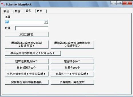 (2)口袋妖怪修改器通用版可以添加挎包:将以上挑选的道具和总数载入运行内存。
