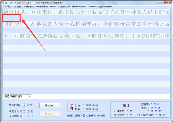 1.登陆您加上的客户后,键入软件。打字人默认设置拼音字母打字,将电脑鼠标放到第一行开始打字;
