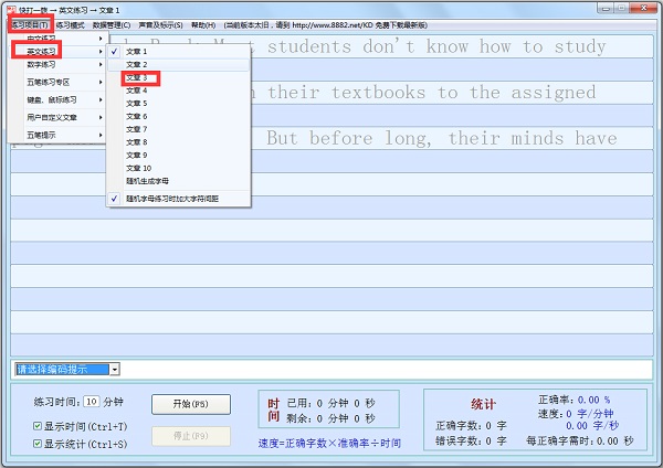 3.每一次训练都是有许多文章内容。它还具备将自身的中英打字考试成绩递交到软件网站排名的作用。