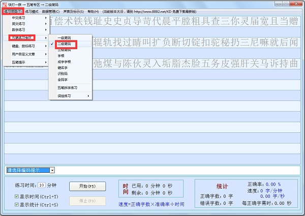 1.一共有电脑基础知识训练、汉语打字训练、英语打字训练、五笔会员专区、数据打字训练、自定训练、储存的文章内容训练等多种多样训练种类。